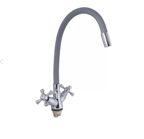 Смеситель д/кухни, VODEN двуручн., серый гибкий гусак 8924 А86G в Комсомольск-на-Амуре