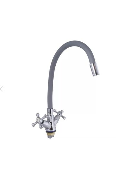Смеситель д/кухни, VODEN двуручн., серый гибкий гусак 8924 А86G