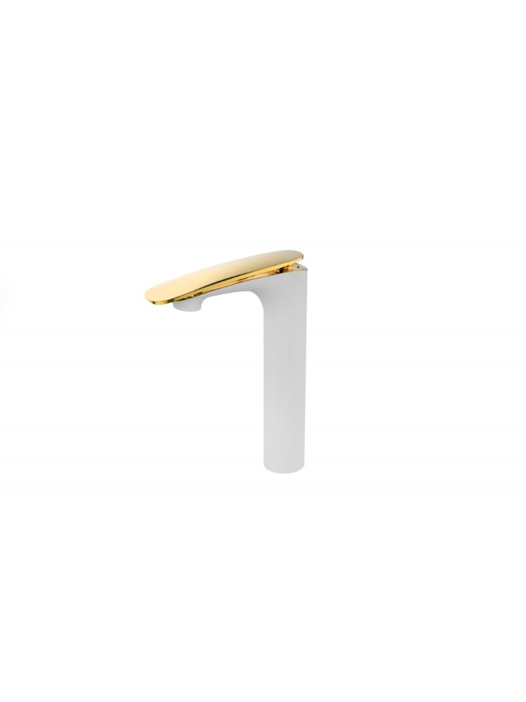 Современный смеситель с высоким изливом — идеальное решение для умывальника в ванной комнате, где важны не только функциональность, но и изысканный дизайн. Белое покрытие с золотыми акцентами подчёркивает статус и гармонично вписывается в современные и классические интерьеры.