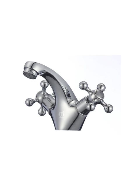 Двухрычажный смеситель для умывальника: простая регулировка воды, латунный корпус, антикоррозийное покрытие, надежность и легкая установка.