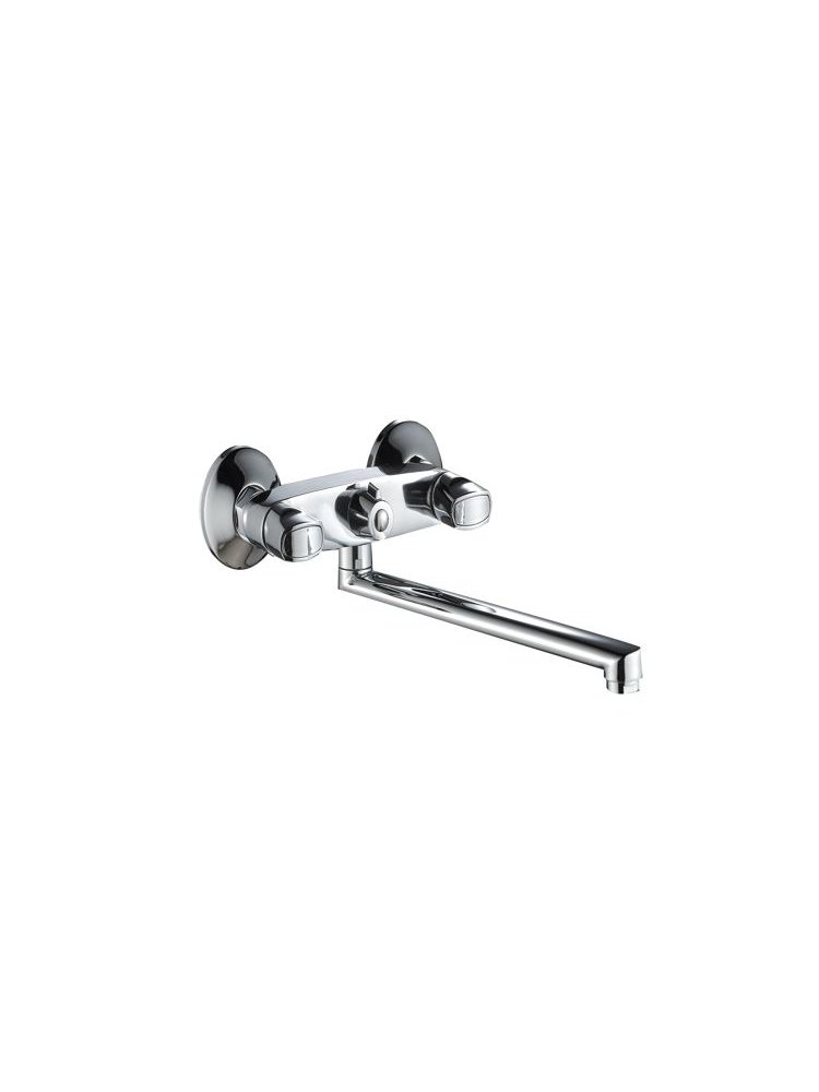 Надёжный и удобный выбор для вашей ванной – этот смеситель идеально подходит для оснащения современных санузлов, обеспечивая стабильную работу и продуманный дизайн. Оснащён длинным изливом 35 см для комфортного наполнения ванны или умывальника, а двуручное управление позволяет точно регулировать температуру и напор воды.