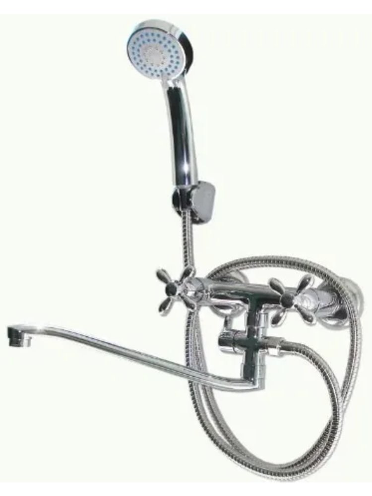 Надёжный смеситель для ванны с длинным изливом 30 см, двуручным управлением, латунным корпусом и хромовым покрытием. Лёгкий монтаж.