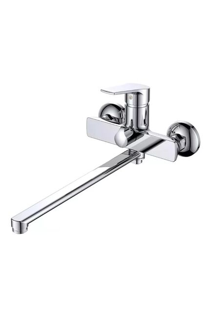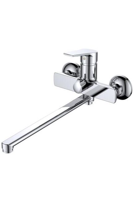 Однорычажный смеситель с изливом 35 см, латунный корпус, керамический картридж, хромированное покрытие, удобен для ванной и умывальника.
