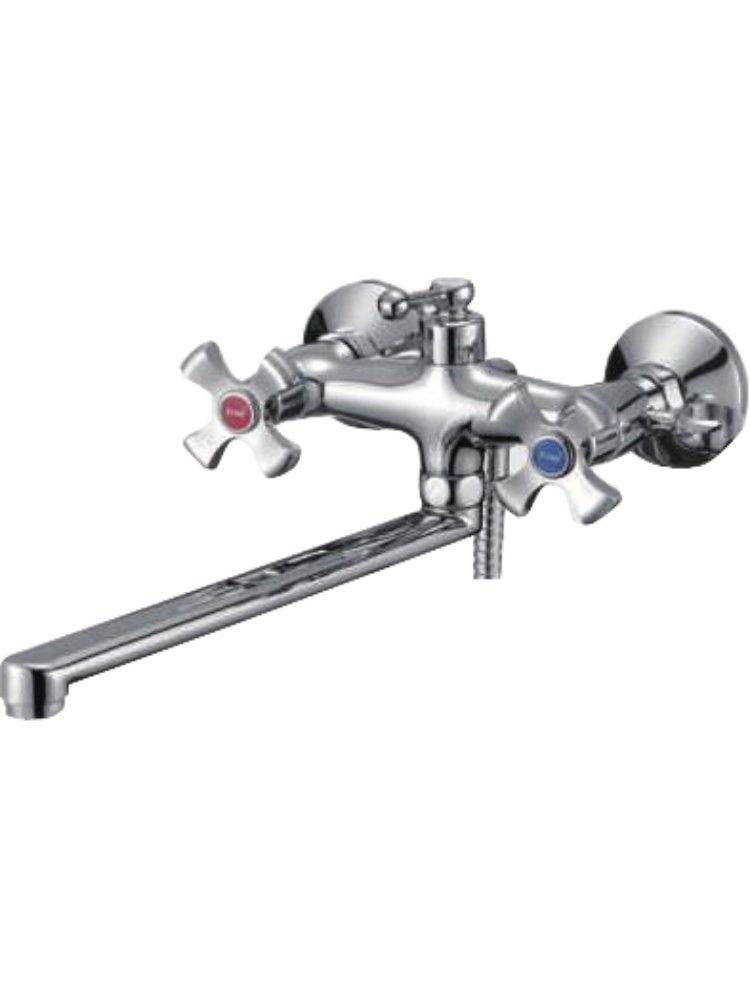 Ищете надежное решение для ванной комнаты? Двуручковый смеситель с длинным изливом 30 см — идеальный выбор для установки на стену над ванной. Простой в эксплуатации и аккуратный в уходе, он обеспечивает плавную регулировку температуры и напора воды благодаря двум удобным вентилям.