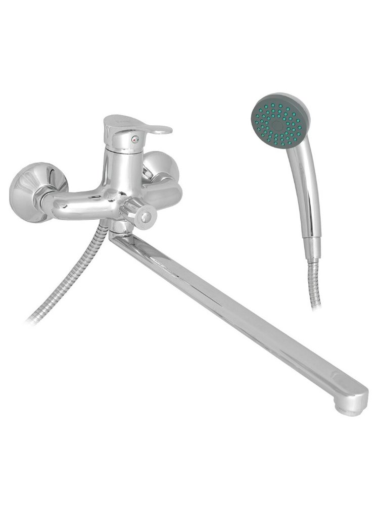 Современное решение для ванной комнаты — функциональный однорычажный смеситель с удлинённым поворотным изливом 40 см обеспечивает максимальное удобство использования при переключении между наполнением ванны и подачей воды на душ.