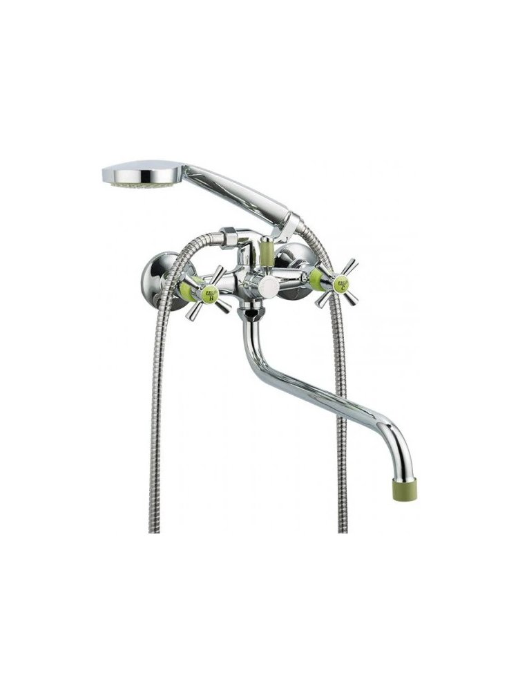 Ищете стильное и практичное решение для ванной? Двуручный смеситель с изливом 30 см и эффектным сочетанием зелёного и хрома станет отличным выбором для обновления интерьера и комфортного использования. Универсальная модель подходит для настенного монтажа над ванной, легко совмещается с различными стилями оформления.