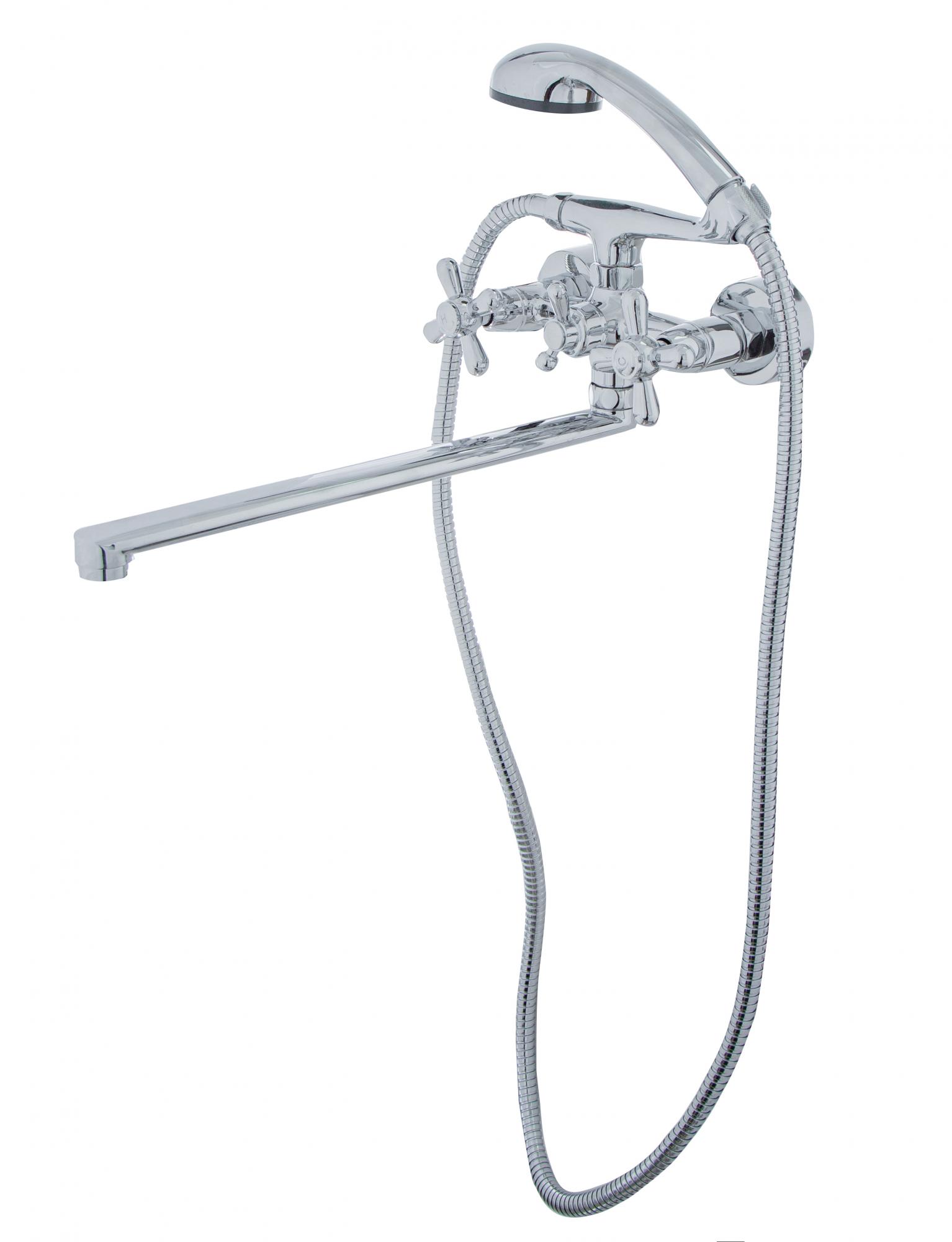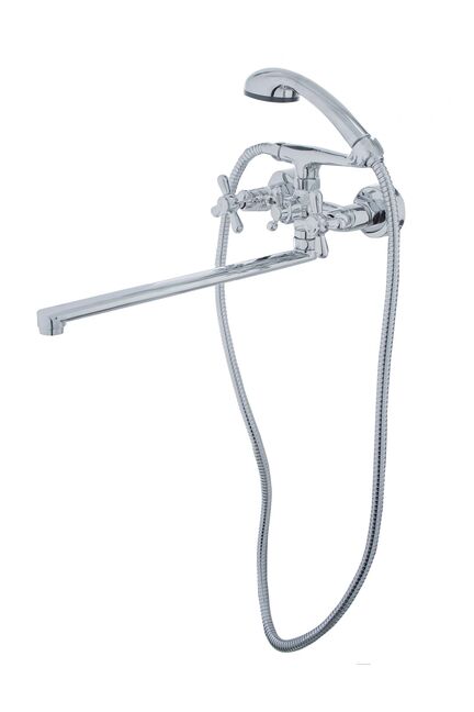 Прочный корпус из латуни. Покрытие: хром Весь товар застрахован и сертифицирован. Гарантия 3 года. Двуручный смеситель с изливом 35 см для ванны, удобное управление, латунный корпус, устойчив к коррозии. Надежность и простота монтажа.