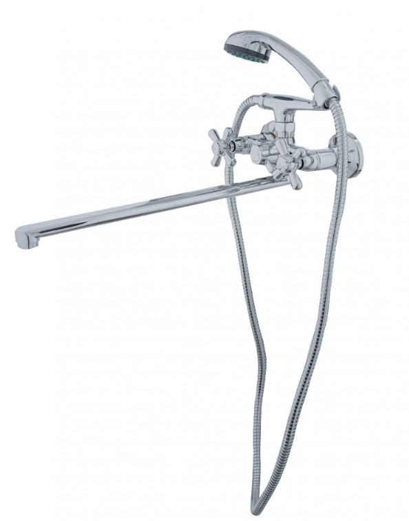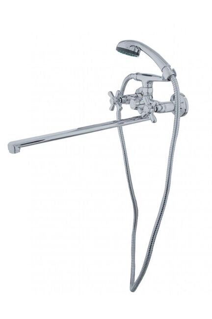 Двуручный смеситель для ванны с изливом 40 см, прочный корпус, хром, плавная регулировка воды. Простота монтажа. Долговечное качество.