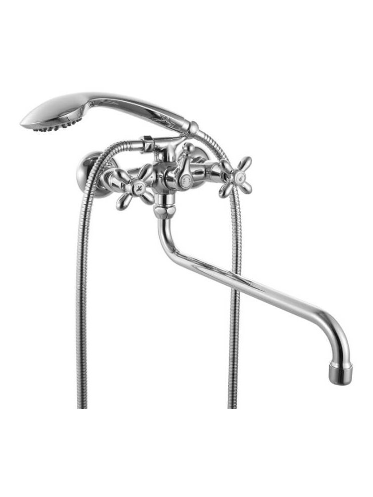 Надёжное и стильное решение для ванной – двуручный смеситель с длинным изливом 30 см идеально подходит для комфортного наполнения ванны и мытья рук. Оптимален для жилых и коммерческих интерьеров, где ценится практичность и современный дизайн.