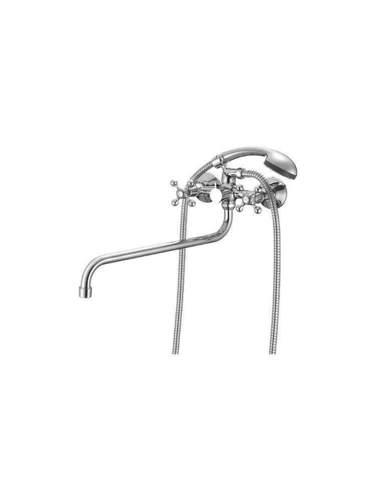Идеальный выбор для вашей ванной – двуручный смеситель с длинным изливом 35 см, обеспечивающий комфортное пользование душем и наполнением ванны.