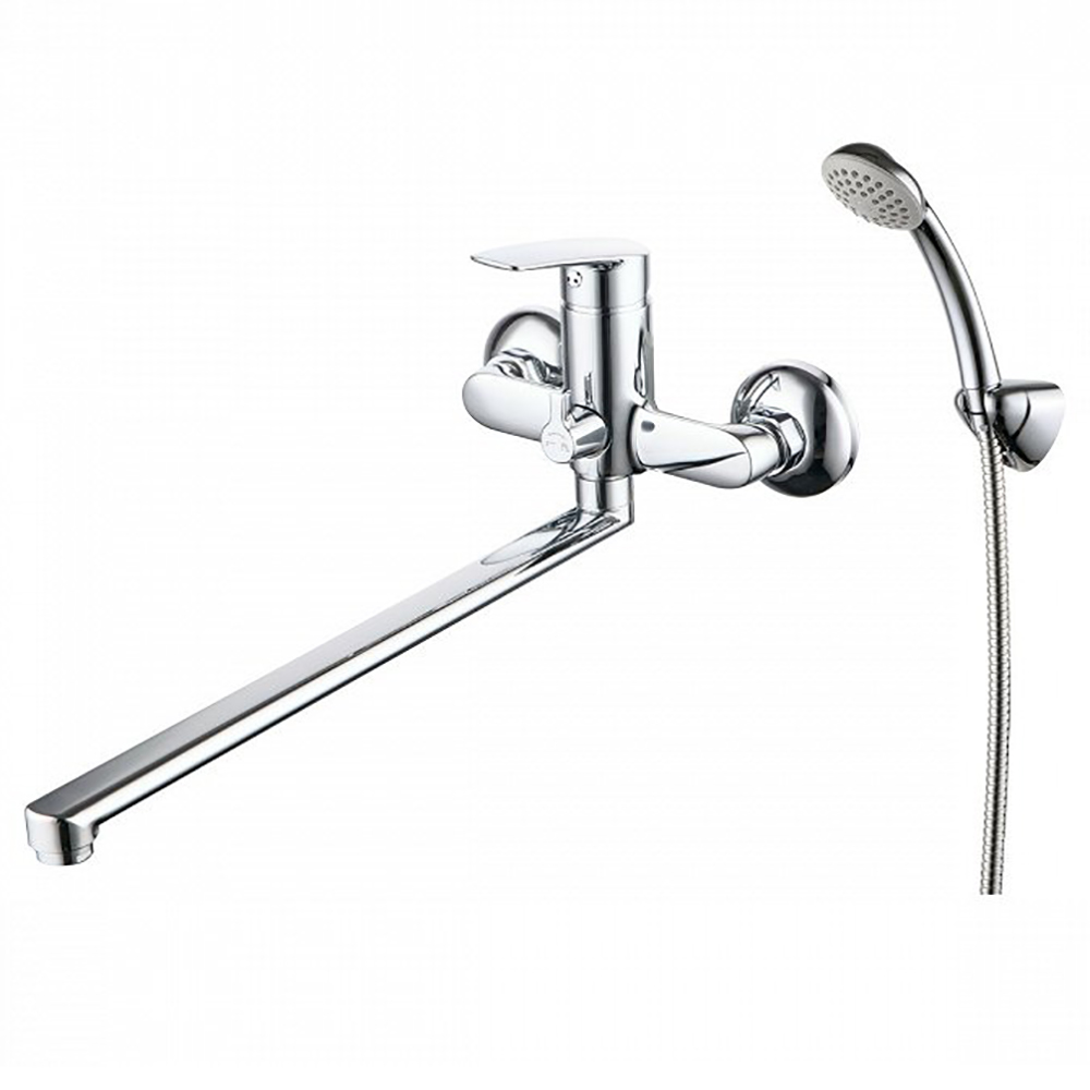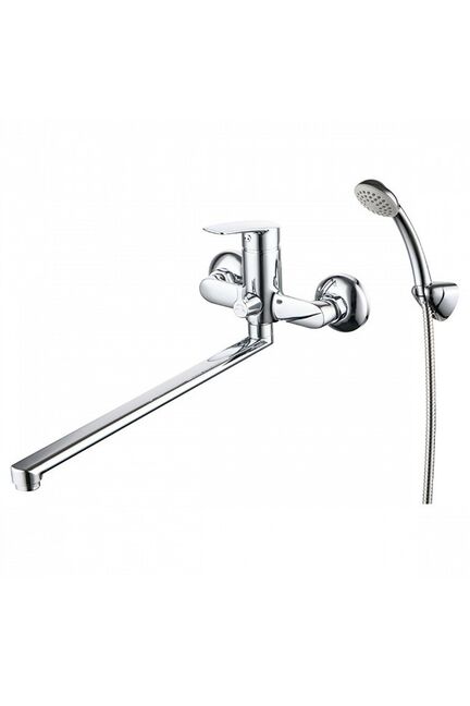 Практичный однорычажный смеситель с поворотным изливом 35 см, керамическим картриджем и стойким хромовым покрытием для современных ванных.
