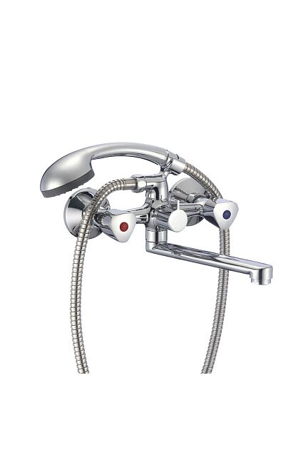 Двуручный смеситель с хромированным корпусом и изливом 17 см, для комфортного использования и точной регулировки воды в ванной комнате.
