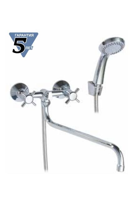 Гарантия: 5 лет Картридж с керамическими дисками. Материал: латунь Двуручный смеситель с изливом 35 см, плавная регулировка воды, надёжный механизм, подходит для ванны и раковины, современный дизайн.