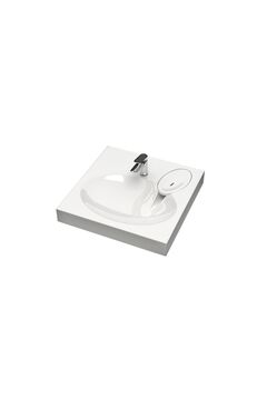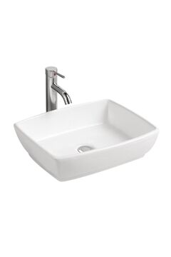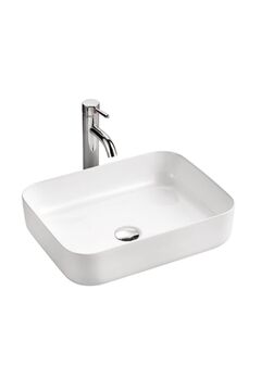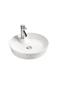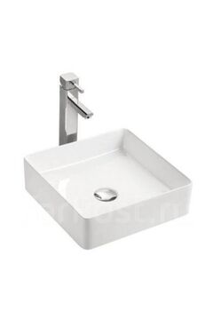 Компактный накладной умывальник 39×50 см из белой керамики: прочный, легкий в уходе, универсален для современных ванных и санузлов.