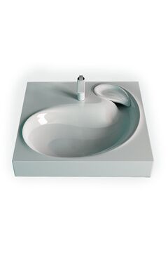 Компактная керамика 420×420×120 мм, стильный дизайн, стойкая к повреждениям, легко монтируется на тумбу, проста в уходе и идеально для современных интерьеров.