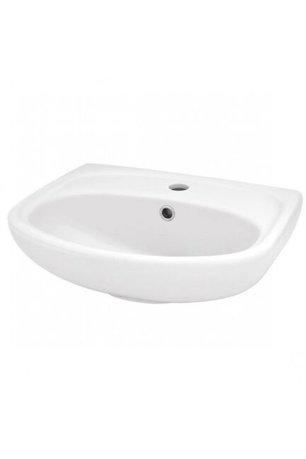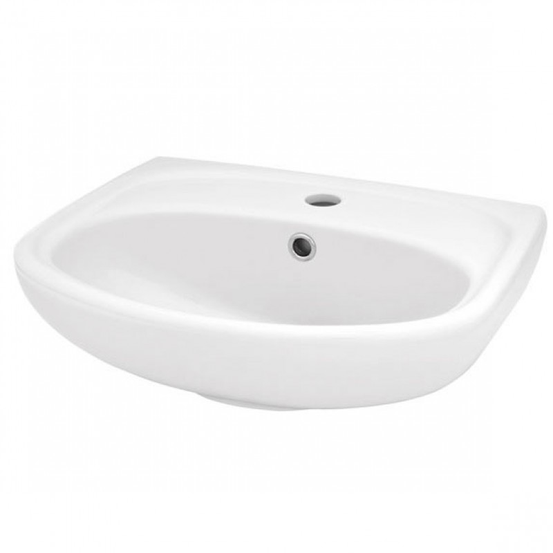Эргономичный умывальник с пьедесталом 550×450 мм: керамика, белый цвет, удобно скрывает коммуникации, легко очищается, подходит для любого санузла.