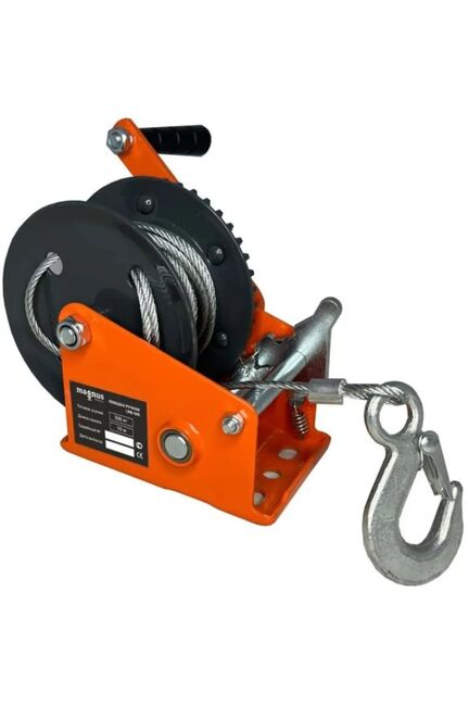 Ручная барабанная лебедка с тормозом Magnus Profi LRT-500, 500 кг, канат 10 м SZ059377 используется при выполнении монтажных и ремонтных работ, ремонта транспортных средств, является вспомогательным средством для вытягивания застрявших автомобилей и грузов. Надёжная ручная лебёдка с тормозом, грузоподъёмностью 500 кг и канатом 10 м для безопасного подъёма и перемещения грузов на строительстве и в гараже.