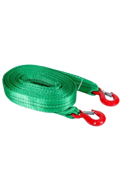 Надёжный ремень на 7 тонн, длина 5 м, с двумя прочными крюками — для буксировки авто и спецтехники в любых условиях стройки и бездорожья.