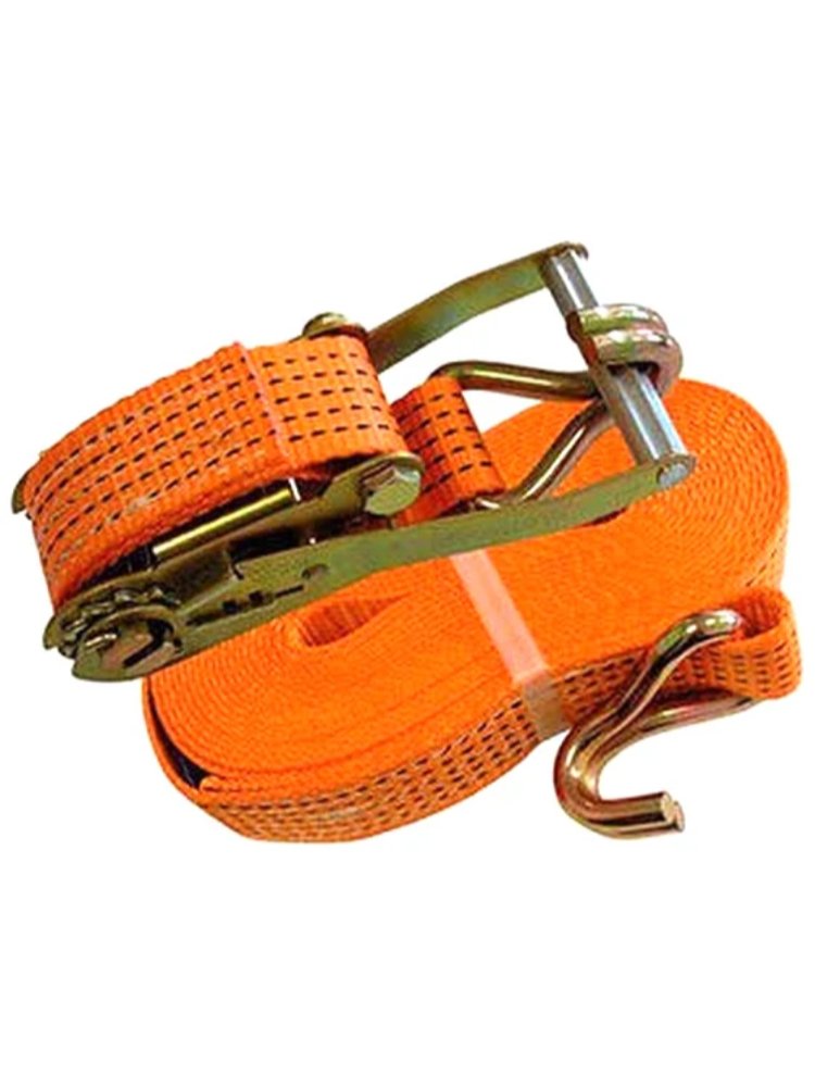 Прочный стяжной ремень 10м, ширина 35мм, выдерживает до 1.5т, разрывная — 3т. Для безопасной перевозки и фиксации тяжёлых грузов.