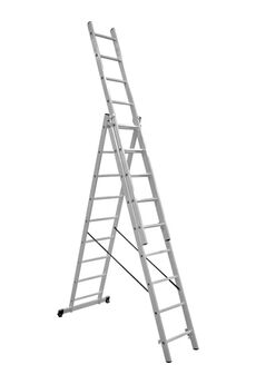 Универсальная 3-секционная алюминиевая лестница: 8 ступеней, высота до 4,5 м, легкая и прочная, удобна для монтажных и ремонтных работ дома и на даче.