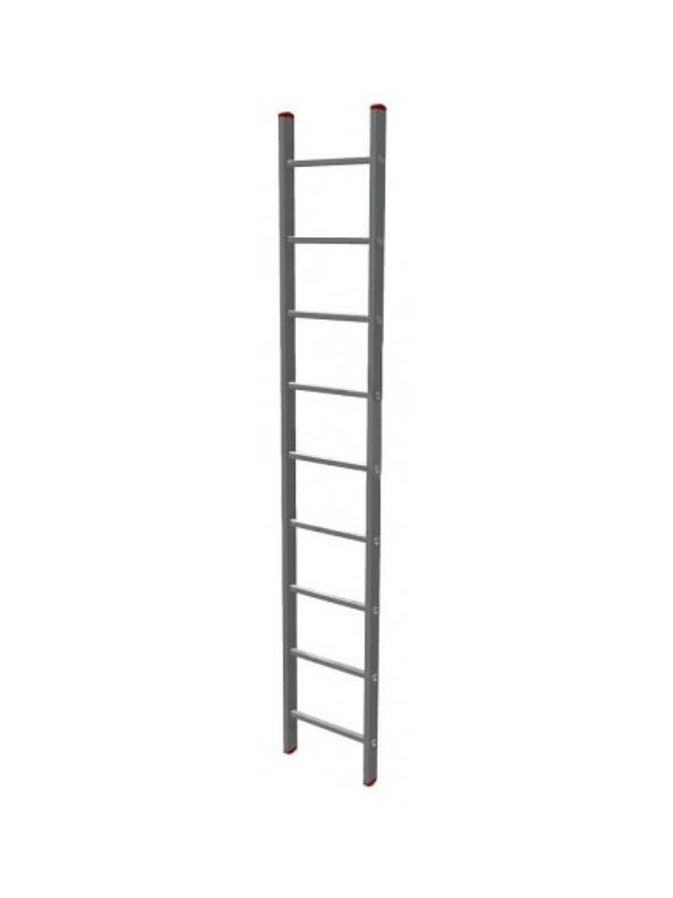 Прочная алюминиевая лестница с 9 рифлеными ступенями, высота 260 см, выдерживает значительные нагрузки, легкая и компактная для хранения.