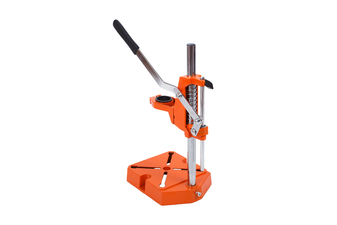 Прочная стойка для дрели с длиной выноса 235 мм, обеспечивает точное вертикальное сверление и совместимость с дрелями 38–43 мм.