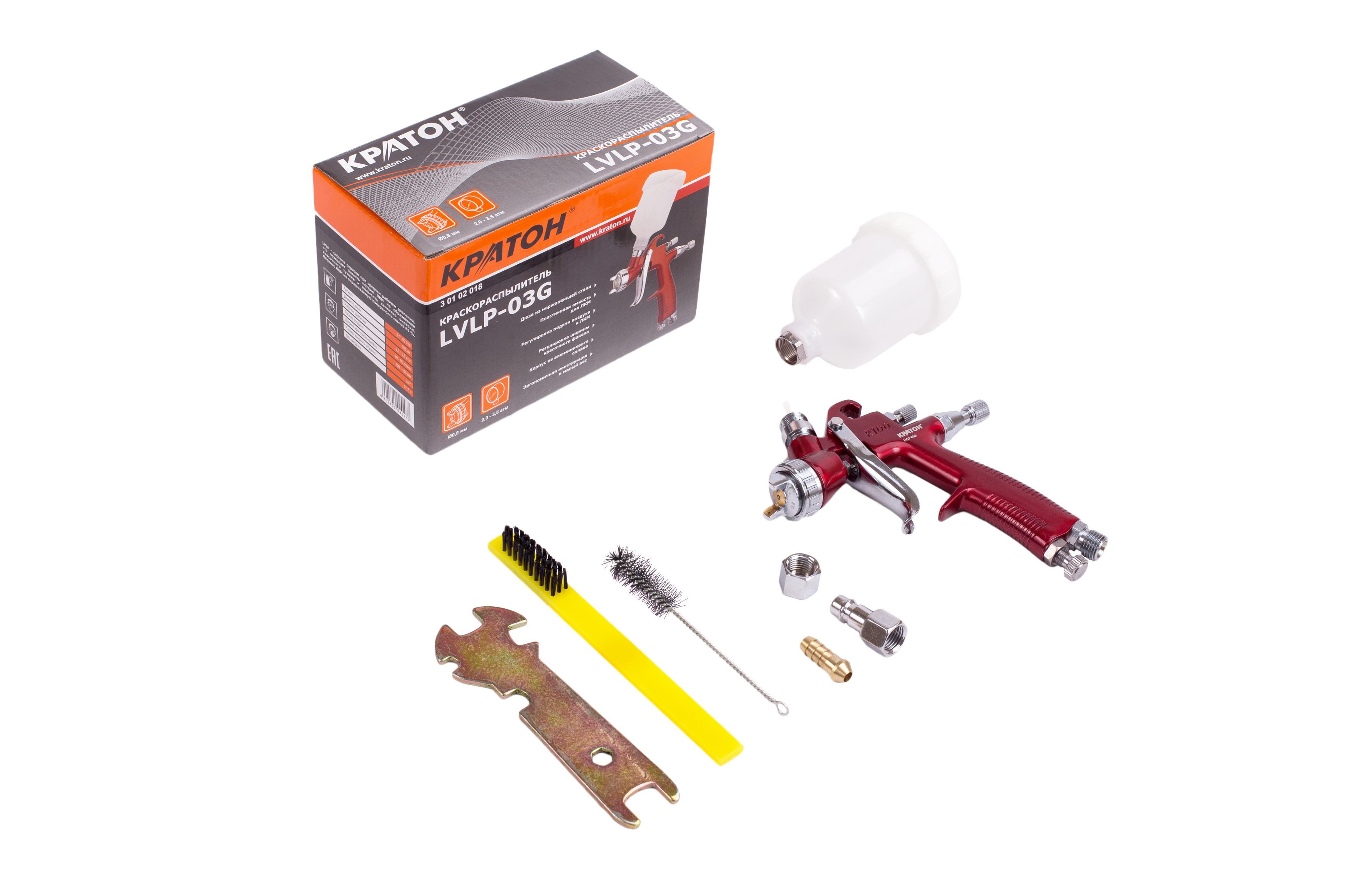 LVLP-распылитель: точное нанесение, минимальный расход, бачок 600 мл, сопло 1,3 мм, давление 1,5–2,5 бар. Для ремонта и декоративных покрытий.