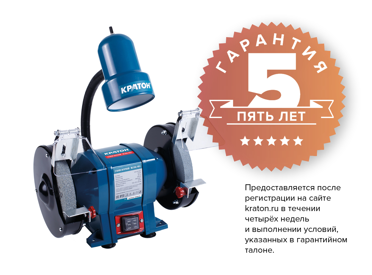 Станок заточной КРАТОН BG 250/150L (250 Вт, круг 150х20х32 мм, 2 950 об/мин) лампа