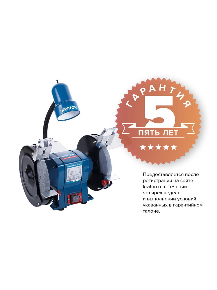Станок заточной КРАТОН BG 350/200L (350 Вт, круг 200х20х32 мм, 2 950 об/мин) лампа