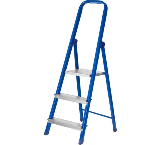 Стремянка используется для бытовых и ремонтных работ. Стремянка выполнена из прямоугольного профиля и окрашена синей полимерной краской для защиты от коррозии.