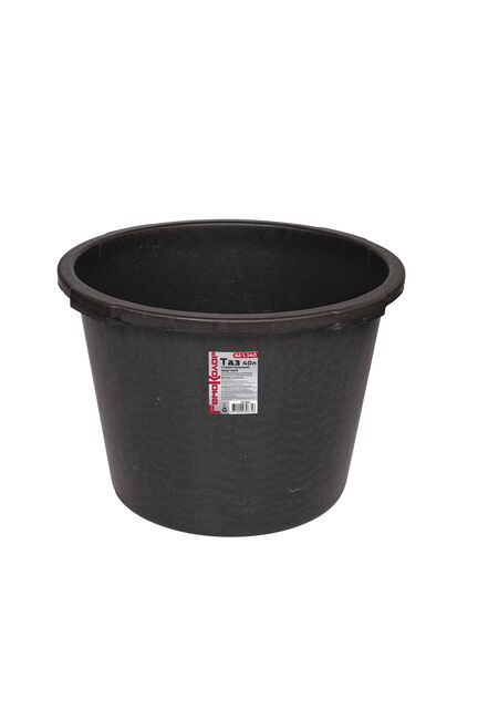 Для строительного и хозяйственного назначения. Изготовлен из вторичного полипропилена с добавлением эластичных добавок в ввиде ПВД. Вес 1,46кг, высота - 33,5см, верхний диаметр - 43,5см, нижний диаметр - 34см. Прочный пластиковый таз 40 л для замешивания смесей и переноски стройматериалов. Удобные ручки, усиленный обод, легкая очистка.