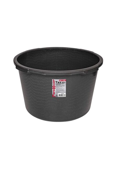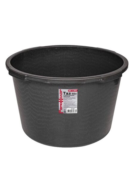 Для строительного и хозяйственного назначения. Изготовлен из вторичного полипропилена с добавлением эластичных добавок в ввиде ПВД. Вес 1,86кг, высота - 33,5см, верхний диаметр - 51см, нижний диаметр - 42см. Для замешивания и транспортировки строительных смесей, объем 65 л, прочный пластик, повышенная износостойкость.