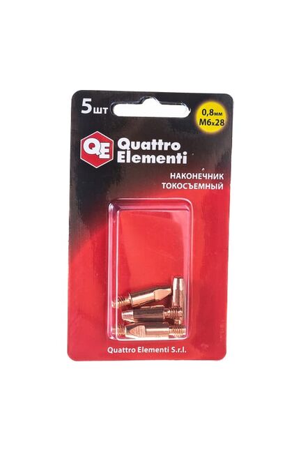 Наконечник токосъемный QUATTRO ELEMENTI M6x28, 0,8мм (5 шт)