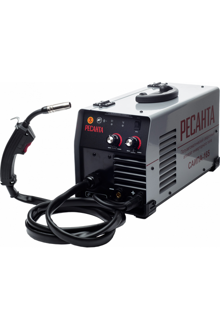 Сварочный полуавтомат Ресанта САИПА 165 – источник питания инверторного типа, функционирующий на постоянном токе. Прибор разработан для сваривания движущим проволочным электродом в аргонной, углекислой среде, либо плавящимся, с рутиловым покрытием – способом ММА (ручная дуговая сварка). Полуавтоматический аппарат быстро, эффективно выполняет соединение различных металлических конструкций и заготовок, изготовленных из цветных металлов и нержавейки, методом Mig Mag. Полуавтомат Ресанта 165 работает от стандартной однофазной сети питания 220 Вольт. В конструкции применены основные функции, формирующие высокое качество ключевых параметров сварной ванны: антиприлипание, прогон проволоки на холостом ходу (обеспечивает моментальную очистку сопла горелки), опция FCAW (сварка без газовой среды – методом ММА, с применением порошковой проволоки). Чтобы исключить прожигание тонколистовой стали, в компоновке САИПА Resanta 165 внедрена функция обратной полярности. Полуавтомат для сварки MIG/MAG, ток 30–165А, стабильно вари