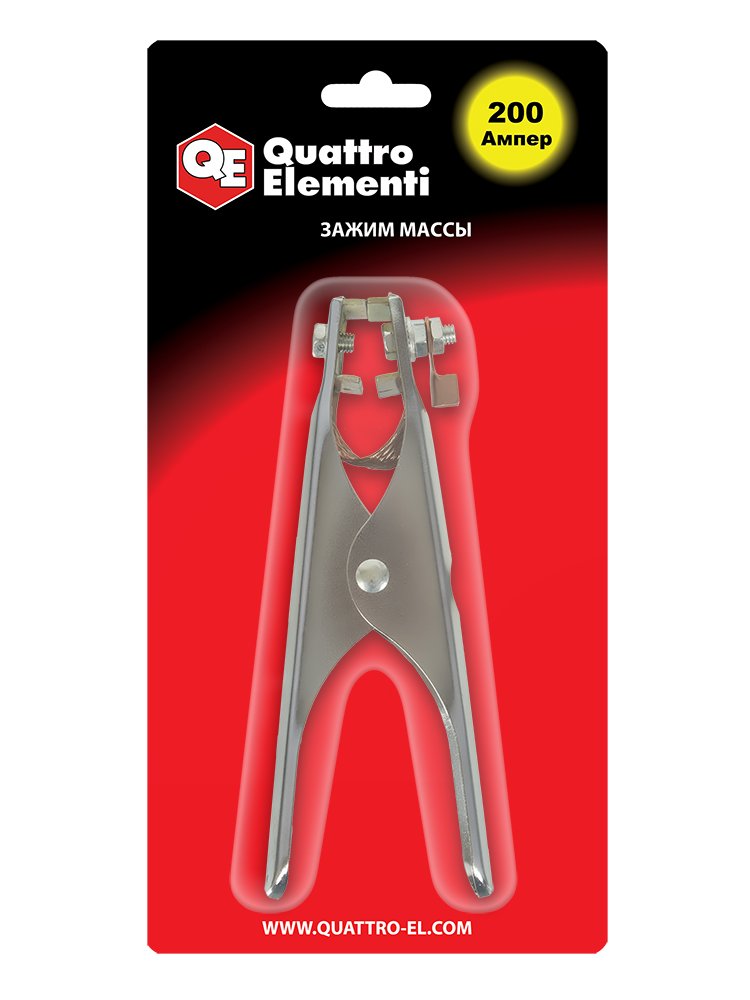 Зажим массы QUATTRO ELEMENTI, артикул 771-596, предназначена для соединения сварочного аппарата с землей (заземление) во время проведения сварочных работ. Максимальный сварочный ток 200 А. Зажим массы 200 А, надёжное соединение при сварке, стальной корпус, антикоррозийное покрытие, подходит для бытовых и профессиональных работ.