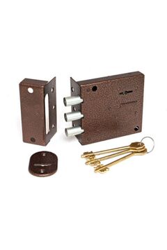 Тип ригелей Цилиндрические Количество ригелей 3 Защелка Отсутствует Удаление ключевого отверстия (Backset) 73 мм Тип механизма секретности Сувальдный с двойной бородкой Количество ключей 3 шт Количество точек запирания 1 Способ запирания изнутри Ключом Цвет корпуса Бронзовый антик Надежный накладной замок с латунным ключом для деревянных и металлических дверей, устойчивый к износу и прост в установке.