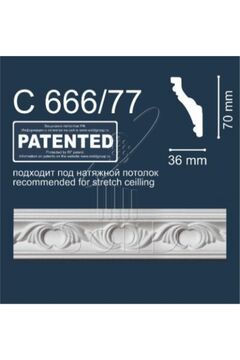 Быстрый монтаж, идеальный стык со стеной, размер 70×36 мм, длина 2 м. Подходит для натяжных потолков, легко окрашивается.