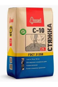Высокопрочная влаго- и морозостойкая стяжка для наружных и внутренних работ Стяжка идеальна для ровного пола, подходит под любые покрытия, слой 10-60 мм, расход 16-18 кг/м², прочность 10 МПа, быстро сохнет.