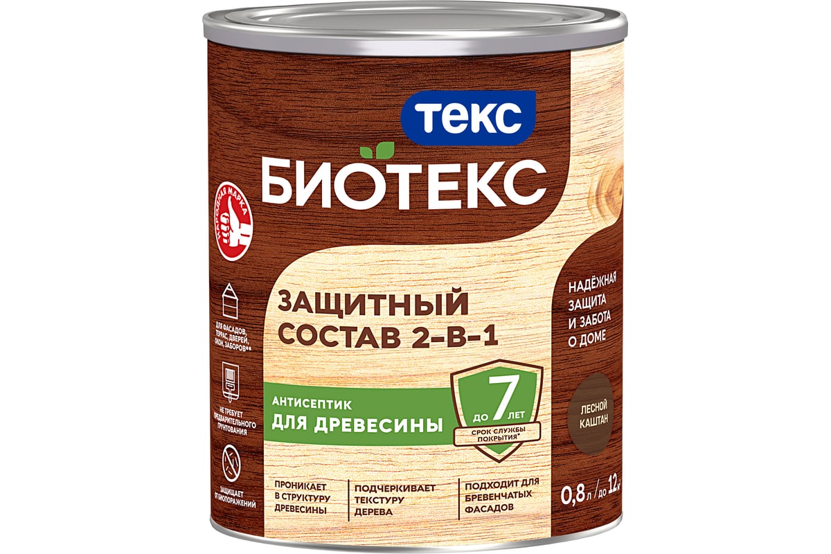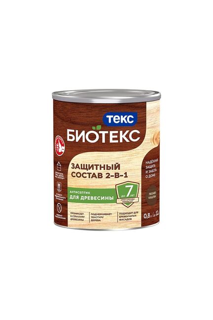Для деревянных поверхностей из брёвен, вагонки, бруса, строганных и пиленых дощатых фасадов, термообработанной и пропитанной под давлением древесины снаружи помещений.Расход 12 - 17 м2/л по строганой и бревенчатой поверхности древесины;