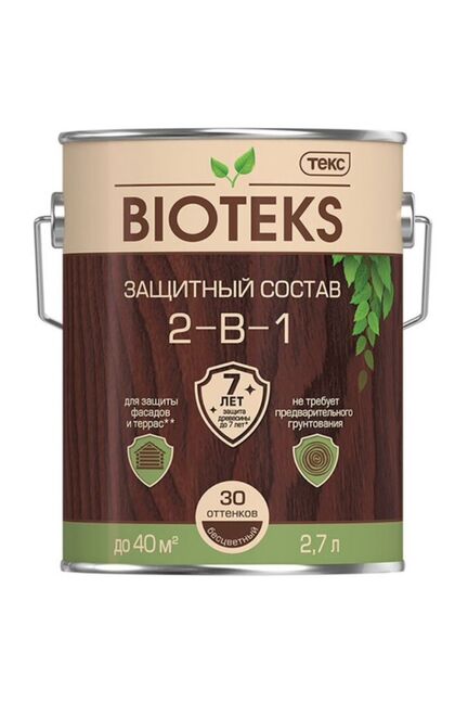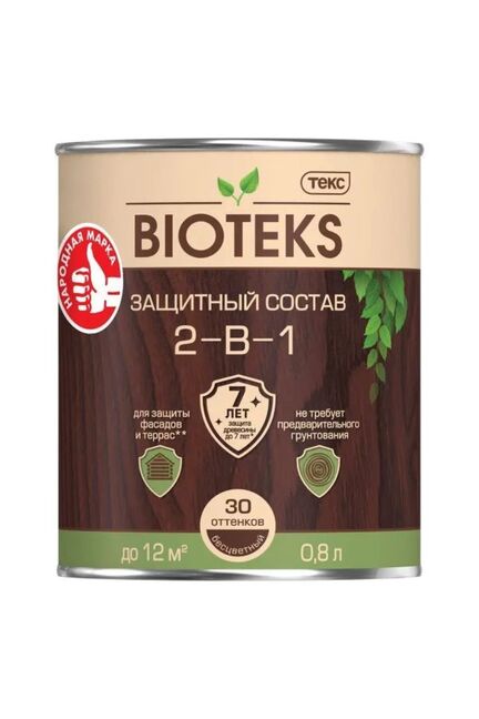 Для деревянных поверхностей из брёвен, вагонки, бруса, строганных и пиленых дощатых фасадов, термообработанной и пропитанной под давлением древесины снаружи помещений.Расход 12 - 17 м2/л по строганой и бревенчатой поверхности древесины; 7 - 9 м2/л по пилёной поверхности древесины. Разбавитель - Уайт-спирит. Время высыхания до отлипа – 1 час, следующий слой можно наносить через – 2 часа, полное – не более 24 часов Идеальная защита древесины до 7 лет, глубокое проникновение, устойчивость к плесени, влаге и УФ, красивый оттенок, расход 1 л на 7-10 м².