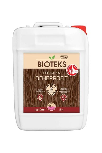 Огнезащита и биозащита в одном средстве, розовый индикатор для контроля нанесения, 5 л для внутренних и наружных деревянных конструкций.
