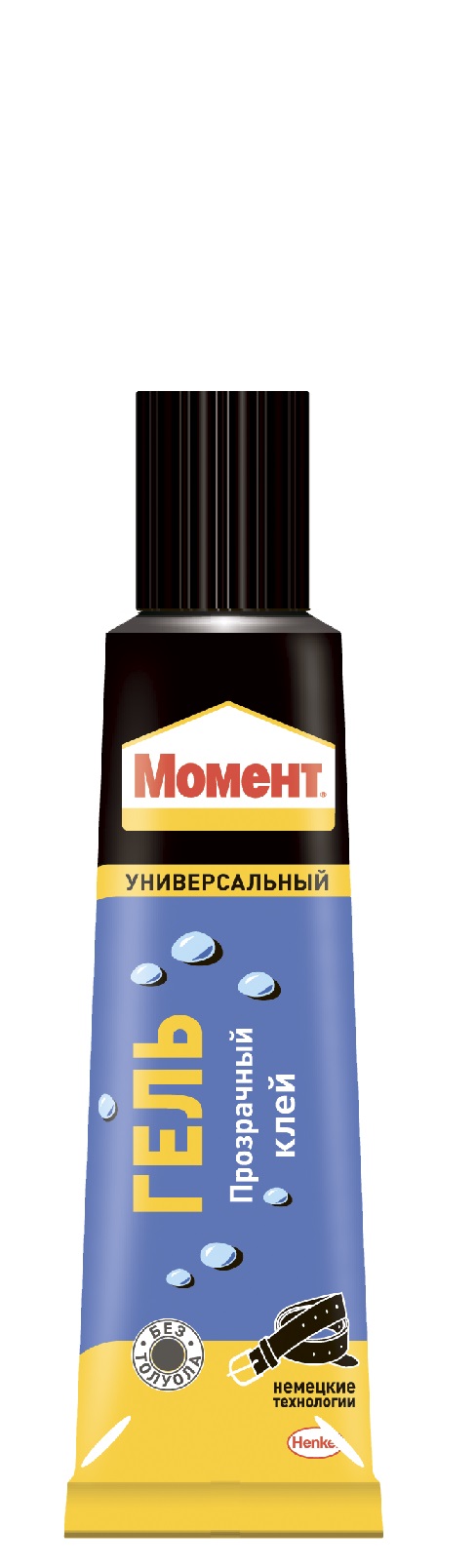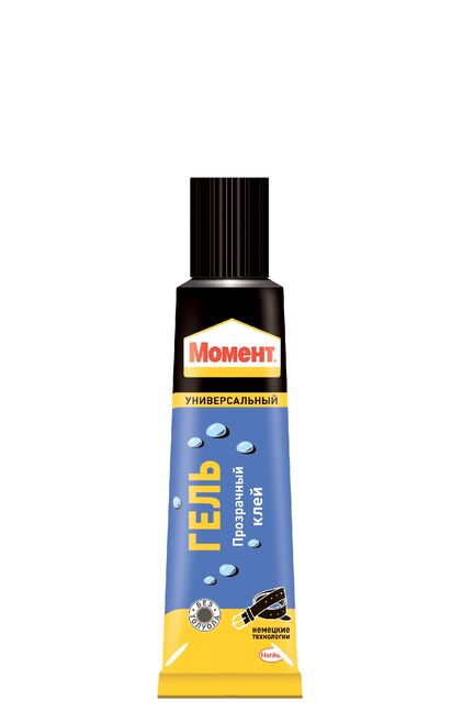 Момент Гель- прозрачный гелеевый клей, не оставляющий заметных следов. Предназначен для работы с пористыми и впитывающими материалами. В различных сочетаниях склеивает дерево, металл, резину, бумагу, картон, кожу, ткань, пробку, поролон, фарфор, керамику, стекло, кроме посуды, контактирующей с пищей. Гелевый клей для прочного, аккуратного и быстрого склеивания большинства бытовых и строительных материалов, не растекается и удобен в нанесении.
