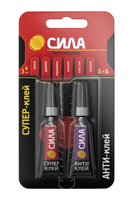 Клей СИЛА-Супер Сверхпрочный 3гр + Антиклей 3гр блистер