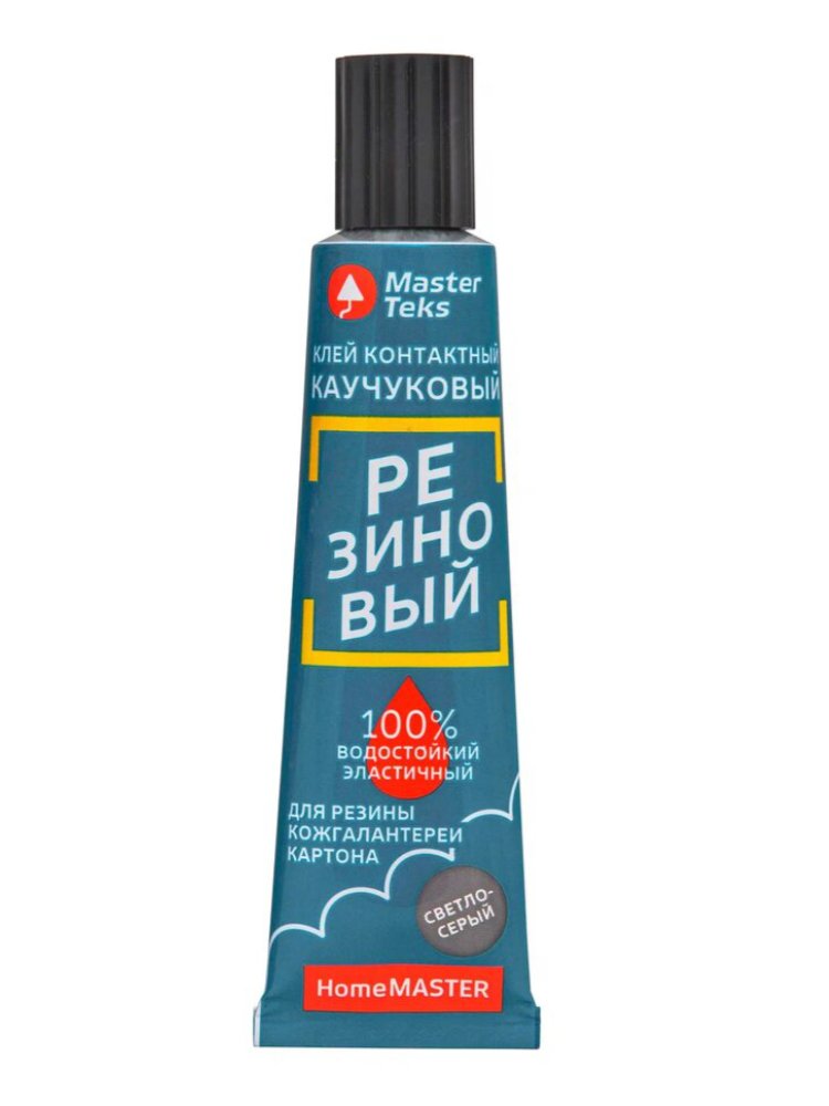 Клей контактный каучуковый MasterTeks HomeMaster резиновый Для изготовления и ремонта любых резиновых изделий и резиновой обуви, кожгалантереи, склеивания бумаги и картона, дизайнерских работ. ПРЕИМУЩЕСТВА: ● 100% водостойкий; ● Эластичный; ● Теплостойкий; ● Морозостойкий. ОБЛАСТЬ ПРИМЕНЕНИЯ: ● Предназначен для изготовления и ремонта различных резиновых изделий и резиновой обуви, кожгалантереи, склеивания бумаги и картона, дизайнерских работ. Не рекомендуется для ПП, ПЭ, тефлона. Условия применения: на очищенные поверхности равномерно нанести тонкий слой клея. Выдержать 8-10 минут и плотно прижать. Для ответственного крепления рекомендуется нанесение второго слоя клея через 5-10 минут после первого. Склеенным изделием можно пользоваться через 24 часа. Температура применения: от +10°C до +30°C. Термостойкость: от -40°C до +70°C. Быстросохнущий каучуковый клей: надежно фиксирует резину, металл, дерево и пластик. Устойчив к влаге и вибрации, легко наносится и долго служит.