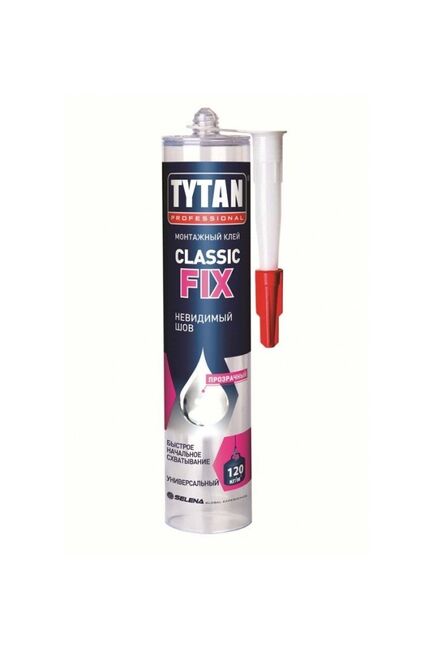 Classic FIX многоцелевой прозрачный каучуковый монтажный клей.Рекомендуется для большинства строительных материалов для финишных и реконструкционных работ. После отверждения образует эластичный и прозрачный шов. Имеет отличную адгезию к типичным строительным основаниям, таким как • Бетон, Древесина, кирпич, штукатурка. Ключевые свойства: Прозрачный шов, образует постоянно прочный, долговечный шов, Эластичный шов. Отличная адегезия к большенству строительных материалов. Для внутренних и наружных