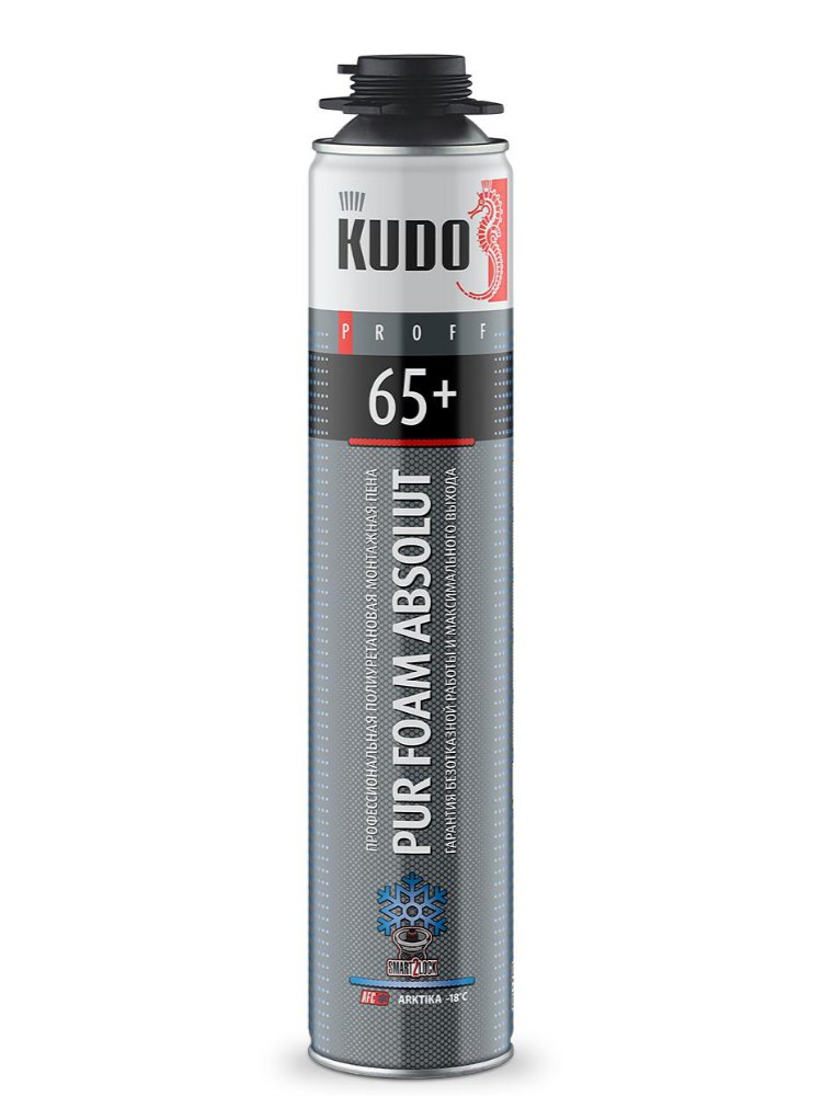 Для монтажа светопрозрачных конструкций, дверных блоков, подоконников, крепления стеновых панелей, герметизации щелей, пустот, тепло- и шумоизоляции швов, а также для других строительных, отделочных и монтажных работ в зимнее время года при температуре окружающей среды до –18°С. Высококачественная однокомпонентная полиуретановая зимняя монтажная пена KUDO® PROFF 65+ ARKTIKA обладает высокой адгезией к большинству строительных материалов, таких как: бетон, кирпич, штукатурка, дерево, пластик, за исключением полиэтилена, полипропилена и фторопласта. Обеспечивает равномерный, стабильный выход и идеальную мелко­пористую структуру готовой пены. Создает превосходную термо- и звукоизоляцию. Не деформирует конструкцию благодаря низкому вторичному расширению. Работы рекомендуется проводить при температуре от –18°С до + 30°С и относительной влажности воздуха не менее 50%. Срок хранения 18 месяцев Профпена с выходом до 65 л, устойчива к морозу, высокое сцепление, минимальная усадка, экономичный расход для зимнего и в