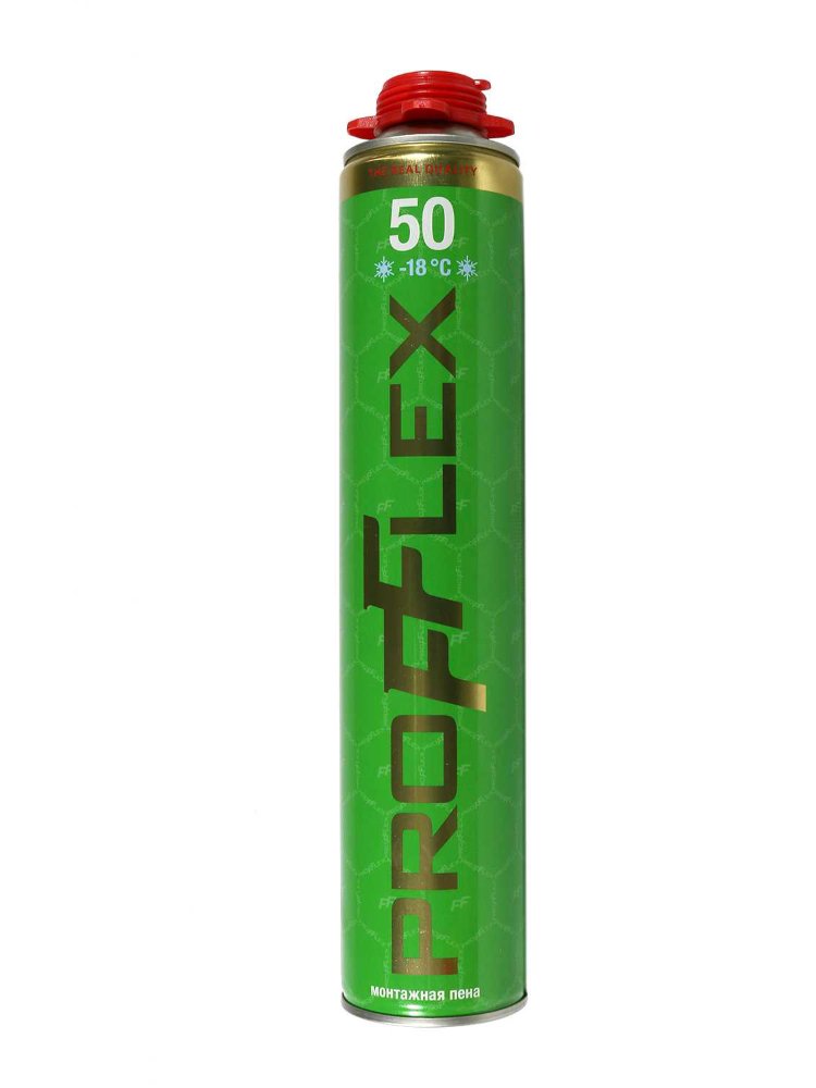 Высокопроизводительная однокомпонентная полиуретановая пена, предназначенная для работы в диапазоне температур от -18°С до +35°С. Пена монтажная PROFFLEX PRO 750 мл, выход до 50 л, зимняя, для работы до -10°C. Высокая адгезия, быстро твердеет, для пистолета.