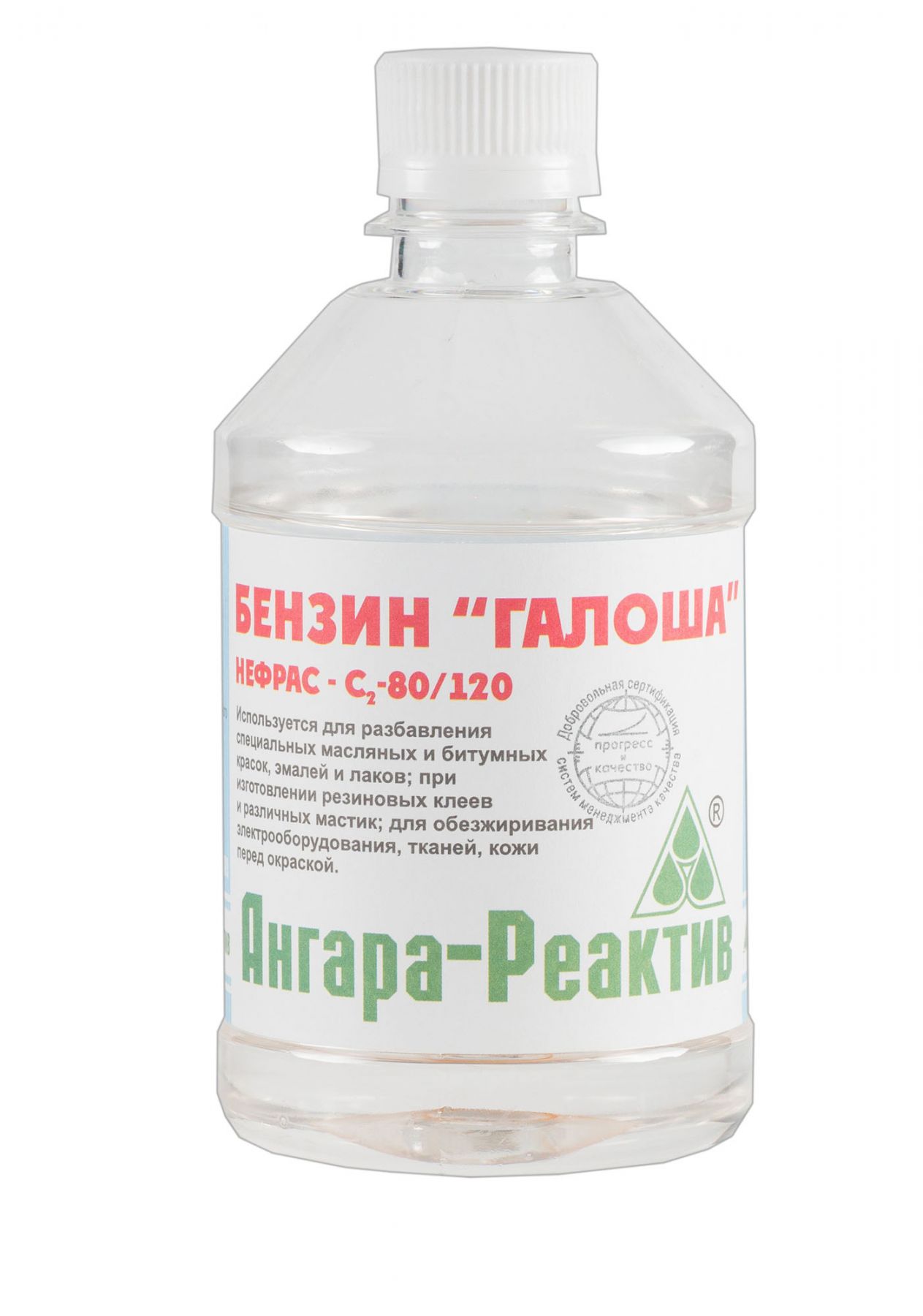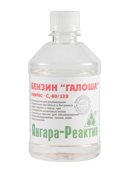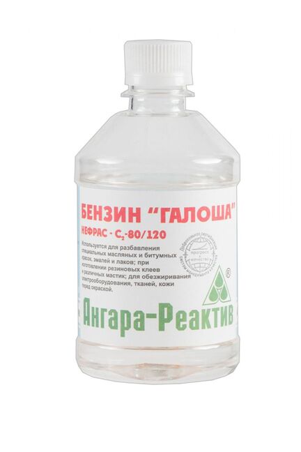 Бензин «Галоша» — бензин с самым высоким октановым показателем, чем у любого другого. Этот высокий показатель означает, что при сжатии бензин будет противостоять воспламенению. Бензин — прозрачная жидкость с характерным запахом. Является продуктом нефтепереработки. Нефрас — нефтяной растворитель. Способ применения Основные сферы применения: - Как разбавитель для лакокрасочных средств - Для удаления жира перед нанесением краски - Очищение инструментов - Производство резиновых клеев Растворяет лаки, краски, жиры; идеально обезжиривает поверхности, ускоряет подготовку к покраске и ремонту. Высокая чистота, быстрое действие.