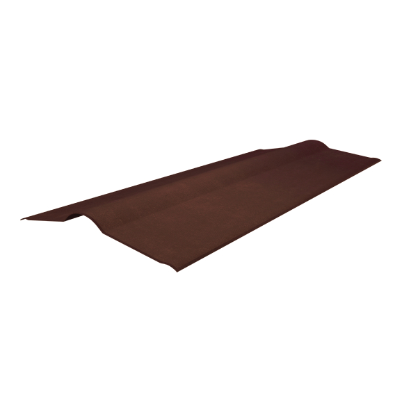 Конек используется для оформления ребра крыши. Коньковый элемент 0,9 м из битумного волокна, устойчив к влаге и ультрафиолету, цвет шоколад, для герметичности и защиты кровли из ондулина.