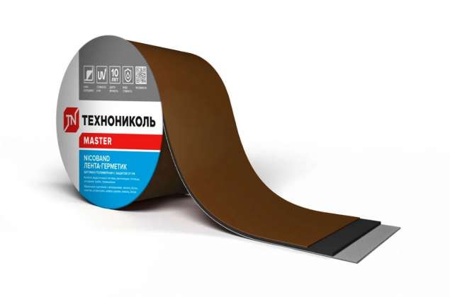 Самоклеющаяся лента марки NICOBAND предназначена для герметизации швов и трещин. Материал представляет собой трёхслойное изделие. Верхний слой – цветное покрытие с УФ-защитой. Средний представляет собой самоклеющийся герметизирующий материал. Нижняя часть – защитная пленка, которая легко отсоединяется. Лента Никобенд нашла широкое применение: материал используют для ремонта кровли, изоляции примыканий и водосточных систем. Изделие отличается хорошим сцеплением с различными материалами, включая древесину, стекло, пластик и бетон.